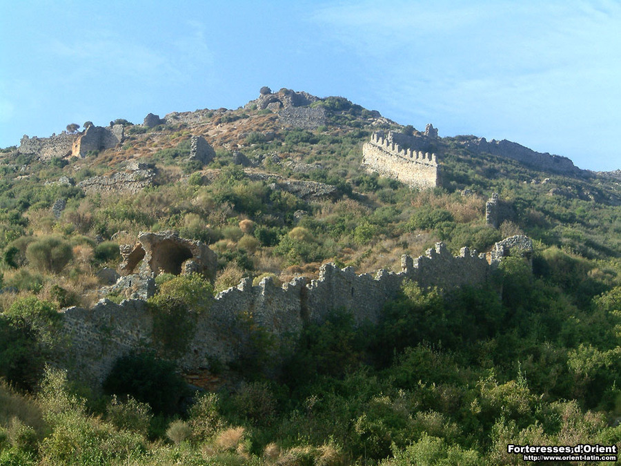 Il n’est pas aisé de gagner l’ensemble fortifé chargé de contrôler cette passe littorale. La citadelle, bâtie en schiste, présente d’importantes similitudes avec celle de Sik, non loin de là. Deux enceintes concentriques enferment un espace réduit couronnant le cap, offrant une vision panoramique sur la route côtière. En regardant vers l’est, on aperçoit l’éperon derrière lequel, comme en embuscade, les défenseurs de la citadelle de Sik défendaient l’entrée en Cilicie arménienne…