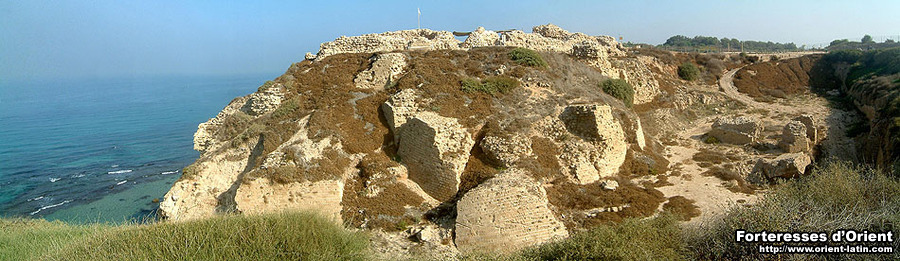 Le site d’Arsur, aujourd’hui appelé Tell Arshaf , surplombe de son mamelon le rivage méditerranéen. Occupé depuis la plus haute antiquité – les Phéniciens d’abord, les Grecs ensuite puis les Romains qui développèrent la petite cité – c’est sous la domination musulmane que la ville connut ses première structures fortifiées, lesquelles servirent lors de l’arrivée des Francs en Palestine.