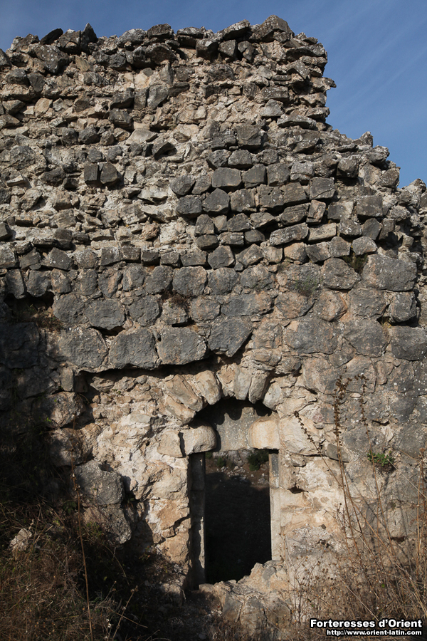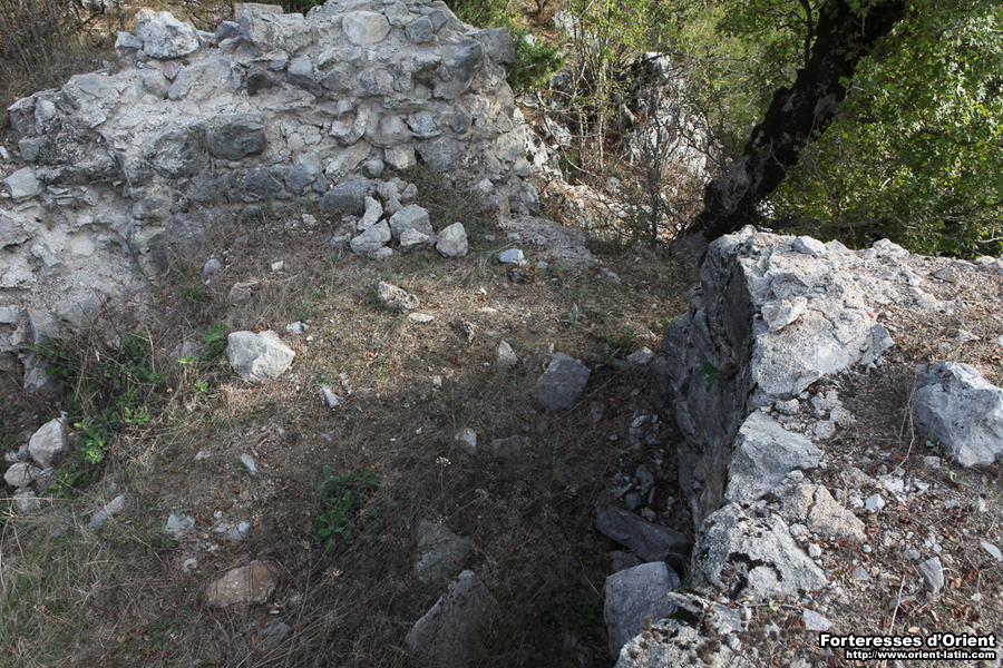 Pour finir, il faut mentionner la présence rare d’une petite chapelle située à l’extérieure de l’enceinte du fortin. Cette chapelle est presque totalement ruinée mais plusieurs fragments de mobilier lapidaire subsistent.