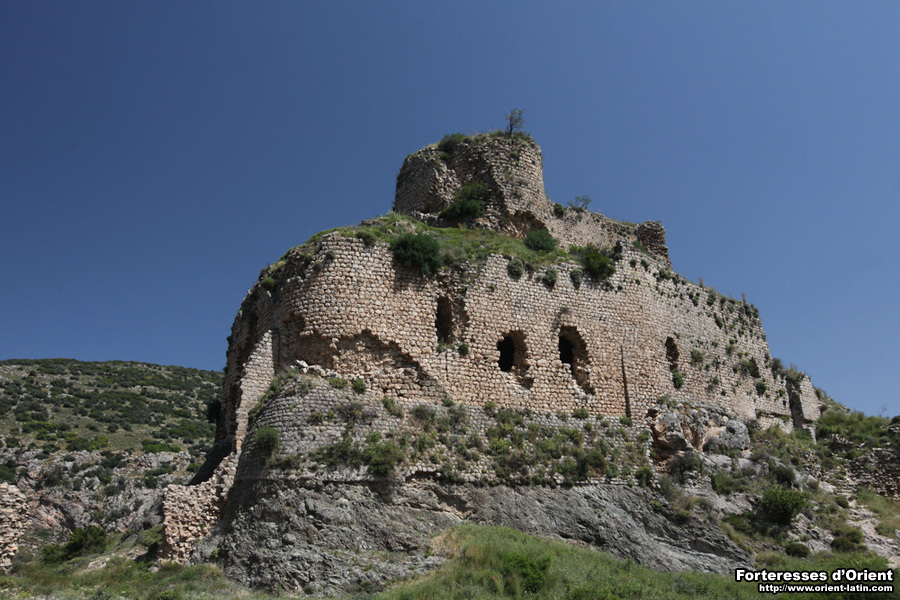 La citadelle se dresse sur un piton rocheux aux flancs escarpés, plus particulièrement sur le côté ouest, si bien que les défenses ont été surtout établies sur les autres fronts. Du coté oriental, par lequel se faisait l’accès, se trouvent deux enceintes dominées par un imposant donjon rectangulaire, le tout construit en petit appareil. Dans la cour se trouvent une grande salle et les vestiges d’une église à chevet plat percé de trois longues ouvertures qui était encore bien conservée avant le tremblement de terre de février 2023. Entre ces deux ouvrages, on remarquera la présence de chambres souterraines, soutenues par d’énormes piliers. Ces chambres additionnées aux nombreux corps de logements sur le reste du site, permettent de conclure que la place pouvait entretenir une importante garnison.