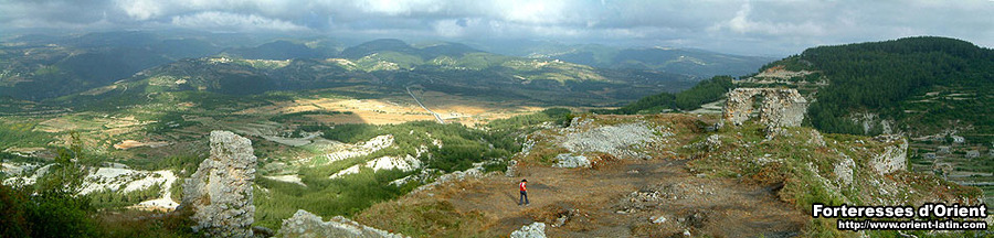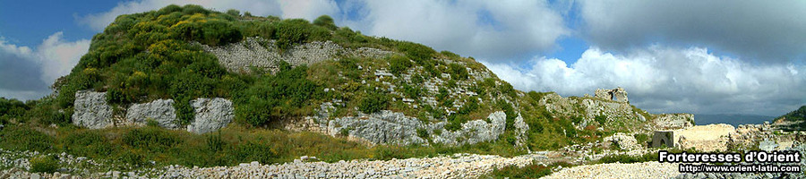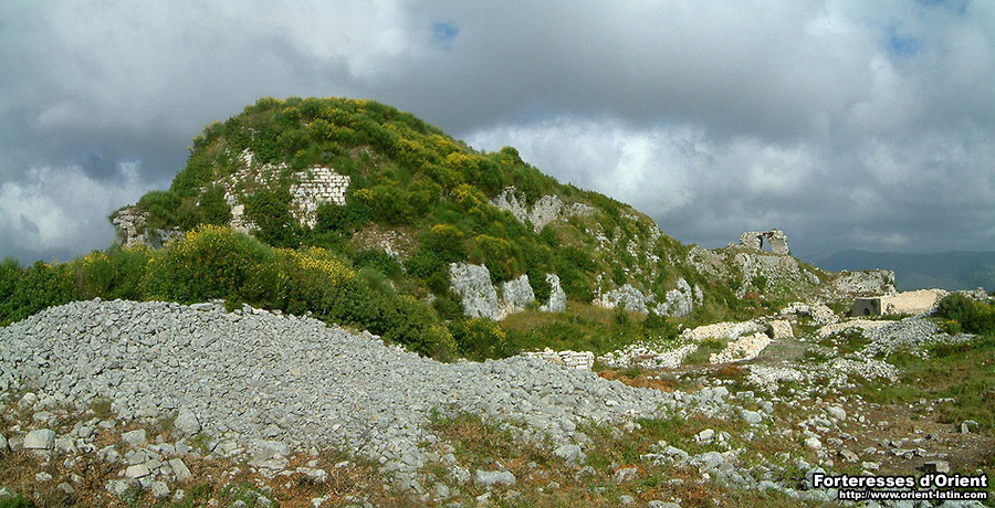 Aujourd’hui envahis par une abondante végétation, les vestiges du château couronnent, à 774 m d’altitude, un plateau sommital de forme ovale, d’où la vue embrasse une très grande étendue au contact de la vallée du Nahr el-Kebir.