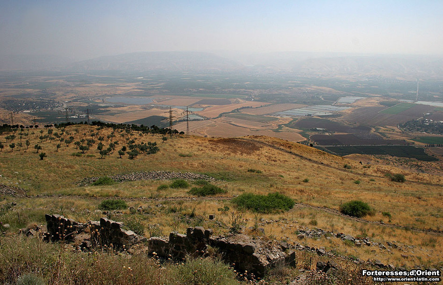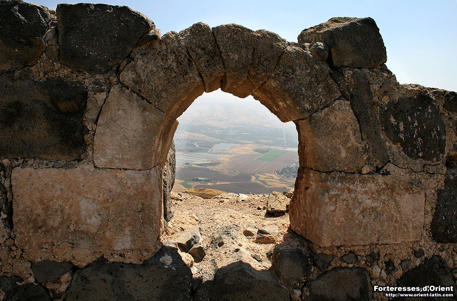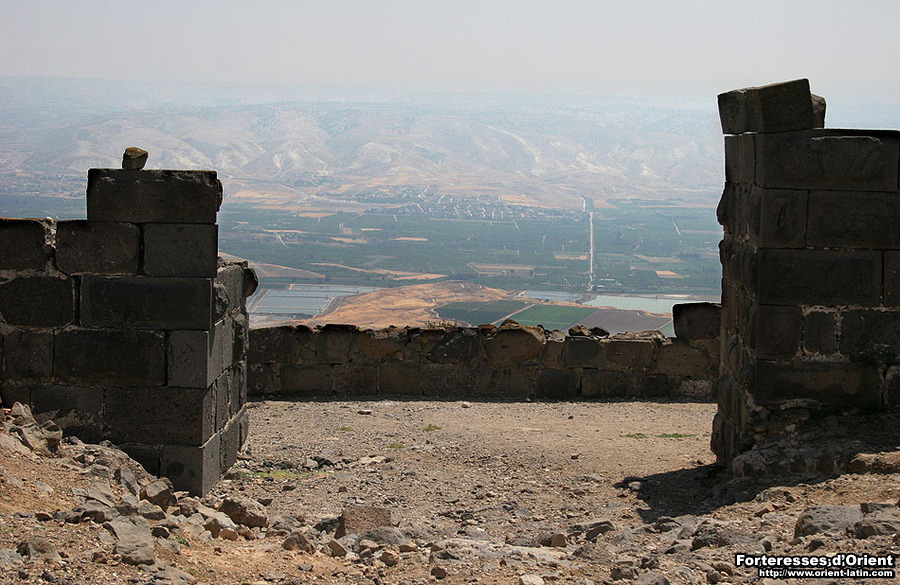 Juchée à plus de 300 mètres au-dessus de la vallée du Jourdain, la citadelle de Belvoir est bâtie en bordure du plateau de Naphtali, face aux collines de Guilead. Justement nommée Belvoir (également « le Coquet » !) par les Croisés, de part les vues qu’elle pouvait offrir sur la plaine d’Esdrelon (aujourd’hui plaine de Jezréel), la forteresse originelle fut édifiée par un obscur seigneur franc, Velos – vassal du comte de Tabarie – non loin des ruines d’un antique village juif nommé « Kochav », c’est-à-dire “l’Etoile” (curieuse correspondance : en arabe, la citadelle répond au doux nom de Kaukab al-Hawa, littéralement, “l’Étoile des vents”). Ce Velos vendit son apanage en 1168 à l’ordre des Hospitaliers, lesquels, comprenant l’importance stratégique de ce site, non loin du pont de Dudaire (actuel pont Allenby), décidèrent d’y bâtir une forteresse d’exception.