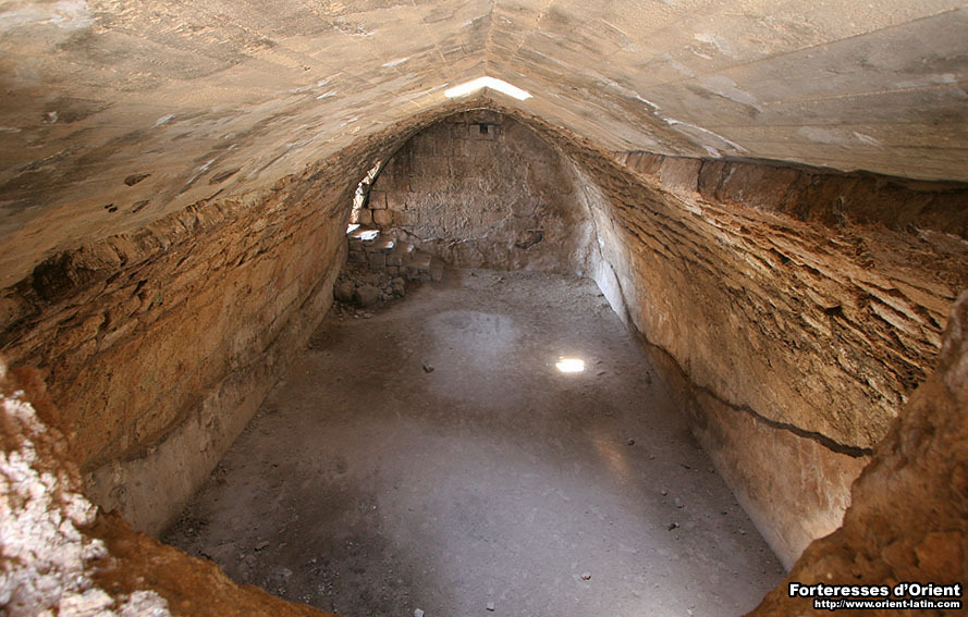 Certains éléments de ces bâtiments sont encore bien conservés aujourd’hui, notamment une citerne, où l’eau de pluie était recueillie au moyen d’un système de conduites aménagées dans les toits. Près de ladite citerne, se dressent les vestiges de ce qui fut la boulangerie de la garnison, avec son grand four double et ses grandes tables de préparation des miches. On trouve des dispositions similaires dans d’autres grands ouvrages hospitaliers contemporains, comme à Kerak, au Crac des chevaliers ou encore à Arsuf. Ces dispositifs sont évidemment à distinguer des cuisines, qui étaient munies de fours simples, plus petits.