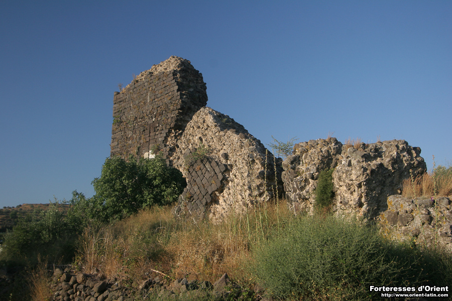 Au premier étage, une archère en sifflet perce encore le mur oriental et on peut facilement imaginer que les vestiges de la seconde archère qui git juste à coté dans un bloc de maçonnerie arraché, était initialement sa voisine. En cela, la configuration était peut-être assez semblable à celle rencontrée à Burj Zara, où les ouvertures de tirs sont réparties par paire sur chaque face.