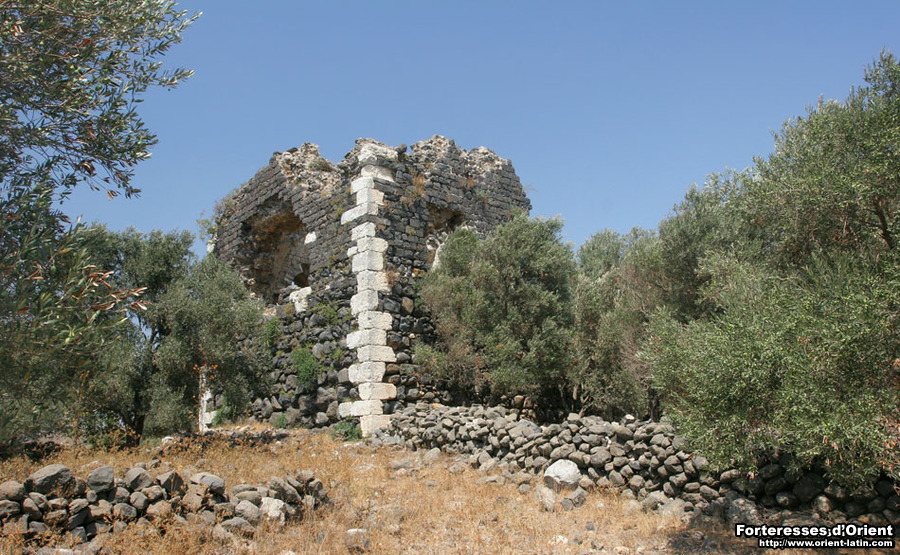 Située à moins d’une vingtaine de kilomètres au sud-est de Chastel Blanc, Burj Zara couronne une colline aujourd’hui recouverte par les oliviers. Elle semble avoir été bâti sur la table d’un petit temple antique dont quelques ruines affleurent ça et là. Bien que ses murs soient encore conservés jusqu’à hauteur du toit, elle n’émerge que très légèrement de cet océan de verdure qui risque bien, un jour prochain, de l’engloutir.