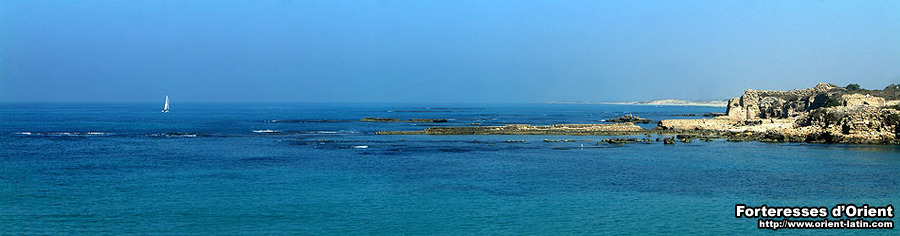 En février 1218, le roi de Jérusalem Jean de Brienne, accompagné par le roi Léopold d’Autriche et les frères Hospitaliers, fortifia le promontoire au sud-ouest de la ville abandonnée, dotant Césarée de son « château ». A la fin de l’année 1219, alors que le roi et les contingents de la Cinquième Croisade étaient partis à la conquête de l’Egypte, le sultan Malik al-Mu’azzam, neveu de Saladin, profita de ce que la Palestine se trouvait dégarnie de troupes pour éprouver la force de la nouvelle forteresse. Il faut croire que celle-ci avait été construite à la hâte puisqu’il ne s’en fallut que de quatre jours pour que les Génois, qui s’étaient proposés de la défendre, ne l’évacuent de nuit. Une nouvelle fois, Césarée – ou plutôt ce qu’il en restait – fut rasée.