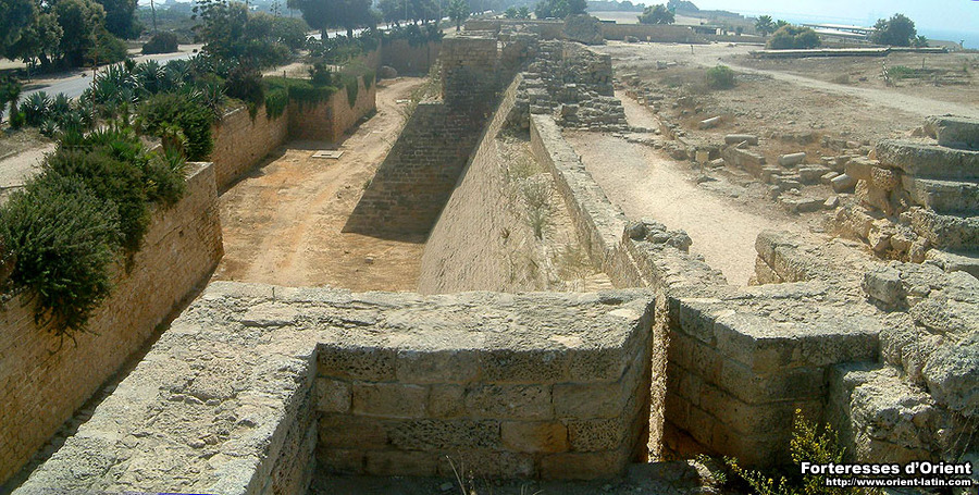 En mars 1251, Saint Louis partit d’Acre avec les débris de son armée refortifier Césarée, qu’il dota d’une toute nouvelle enceinte, forte de seize tours et entourée d’un large fossé. Le château ne fut lui non plus pas en reste. Ce chantier dura près d’une année, au cours de laquelle les ouvriers francs purent travailler sans l’ombre d’une menace musulmane, le roi ne répugnant pas de participer lui même à la tâche, « en rémission de ses péchés »…