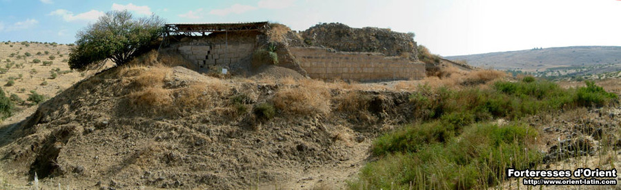 Le site se situe à quelques 500 mètres au sud-ouest du gué de Jacob (l’actuel Jisr Banât Ya’ qûb ), sur le petit tertre ( mediocriter eminens ) de l’antique Qasr al-Athara . Le plan de l’enceinte était rectangulaire avec de légères irrégularités, parmi lesquelles une forme arrondie au niveau de la courtine nord. Les murs, très épais si l’on en croit les chroniques arabes (la muraille dépassait dix coudées – soit à peu près cinq mètres), étaient d’une « hauteur convenable » ( ad convenientem altitudinem ). Le récit du siège dans certaines chroniques semble attester de l’existence d’un réduit sur le front ouest, sur lequel les forces de Saladin concentrèrent d’ailleurs leur sape. Cette tour maîtresse devait être de forme hexagonale, puisque les mêmes chroniques indiquent que les « mines furent menées sur les cinq côtés du mur ». Par ailleurs, on sait également que la forteresse disposait d’une vaste citerne, si large que les musulmans y disposèrent les corps des Templiers et Turcoples massacrés sans pouvoir l’emplir complètement ! De récentes fouilles ont permis de retrouver la base des murs arasés. Les pierres sont effectivement d’une taille impressionnante, et leurs bossages tabulaires presque intacts.