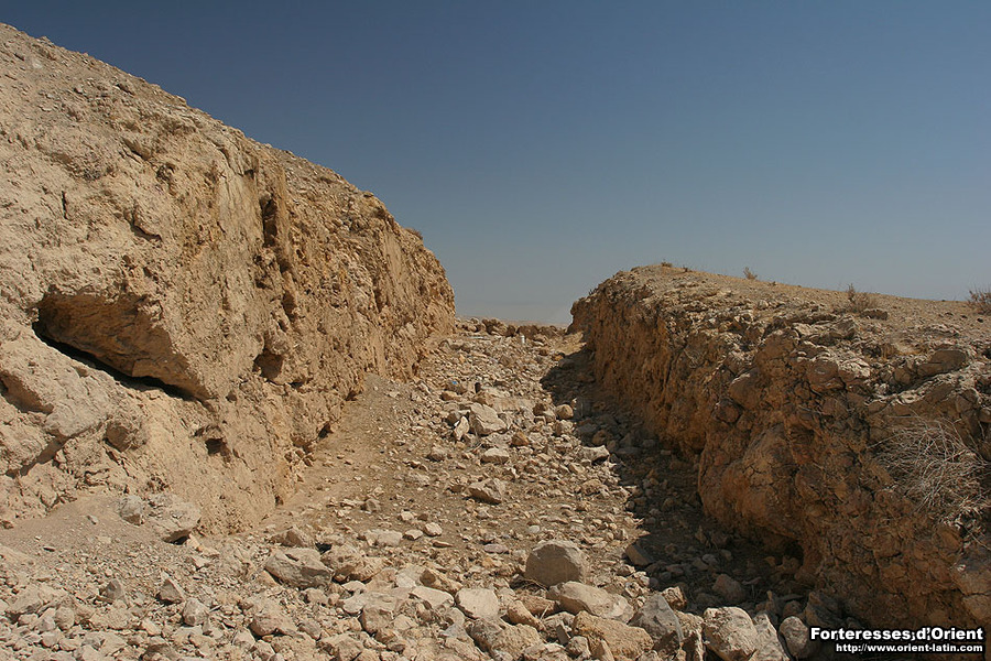 La région est d’une aridité rare et encore aujourd’hui très peu peuplée. Il est donc aisé d’apprécier l’aubaine d’une telle halte, entre Burj Ibn Jubair al-Tahtani et Bethanie, pour tout ceux qui se lançaient dans la difficile et périlleuse marche de Jérusalem jusqu’au Jourdain. Aussi les citernes du château – dont l’une est encore visible – donnèrent son nom à ce lieu dont la garnison s’employait à protéger les pélerins des brigands et autres détrousseurs de grand chemin.