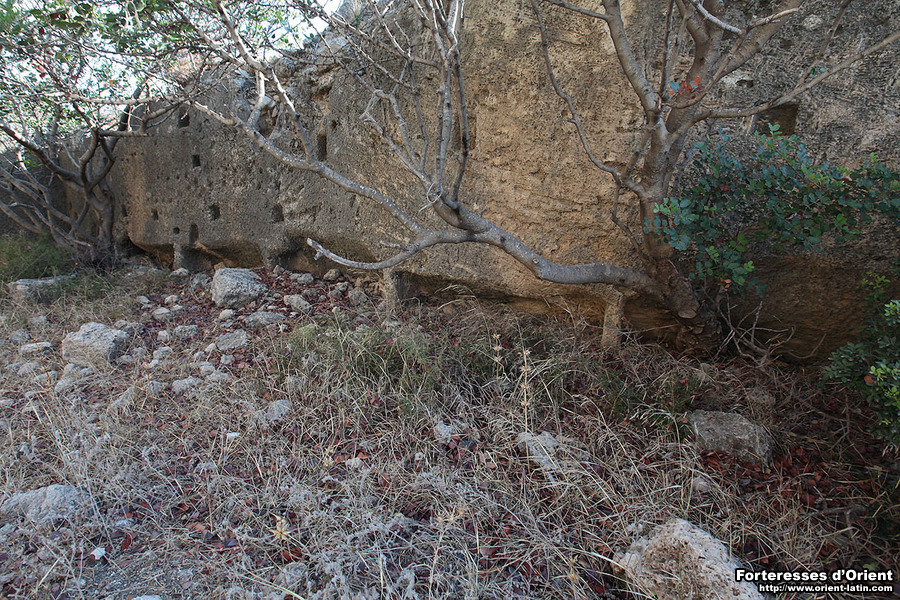 L’ensemble ne se limitait cependant pas à la seule tour que nous venons de décrire. Les assises d’une enceinte en protégeant les faces Sud et Est sont toujours visibles. Treize mangeoires y avait été ménagées et la présence de trous de boulins laisse penser que cet espace était probablement couvert.