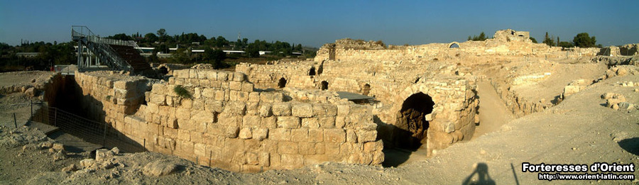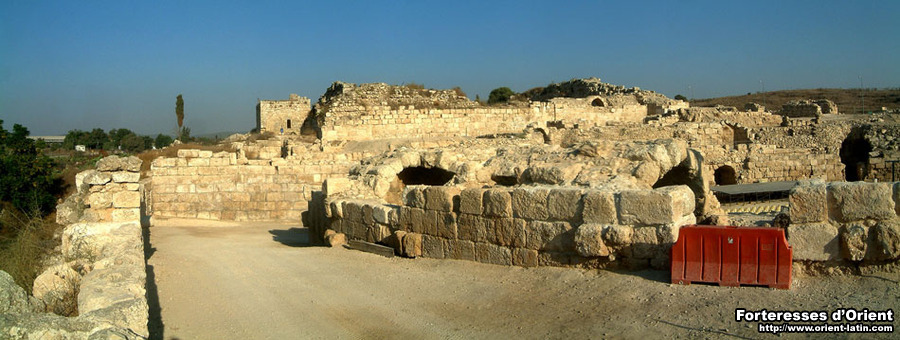 Etablie sur une faible éminence au milieu des vestiges de l’antique ville romaine d’Eleuthèropolis, la citadelle commandait un carrefour de pistes reliant la Philistie à l’intérieur des terres. Forte de ses deux puits, ( Bir al-Kala “un puis où il vint si grand planté d’eue que il li mist nom ‘Abondance’” et Bir al-Hammam ) elle constituait également un important point d’eau en ces contrées désolées…