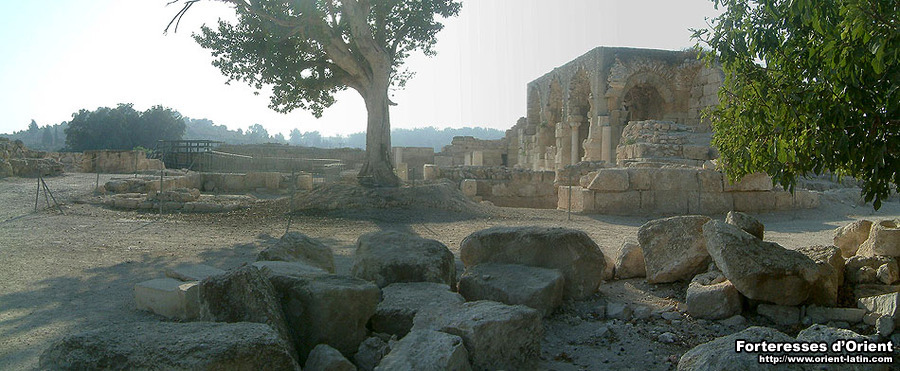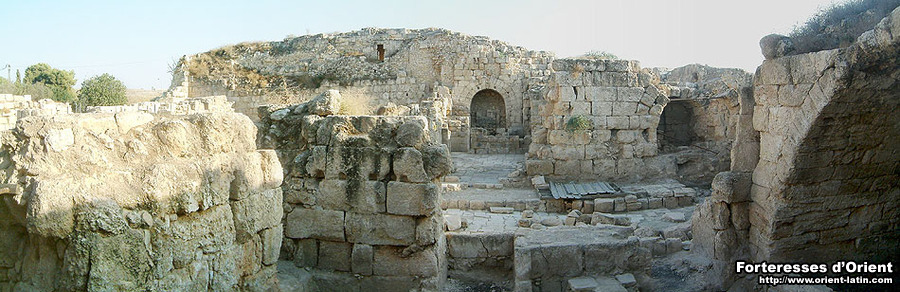 Les chroniques franques racontent que le patriarche de Jérusalem Guillaume de Messine vint diriger en personne les travaux, avec l’assistance des barons du domaine royal et le renfort des habitants de la région. Réutilisant les vestiges de la ville antique, les bâtisseurs firent fort bel ouvrage : « Forz murs i firent et hauz. Torneles grosses, fossés parfonz, barbacanes bonnes".
