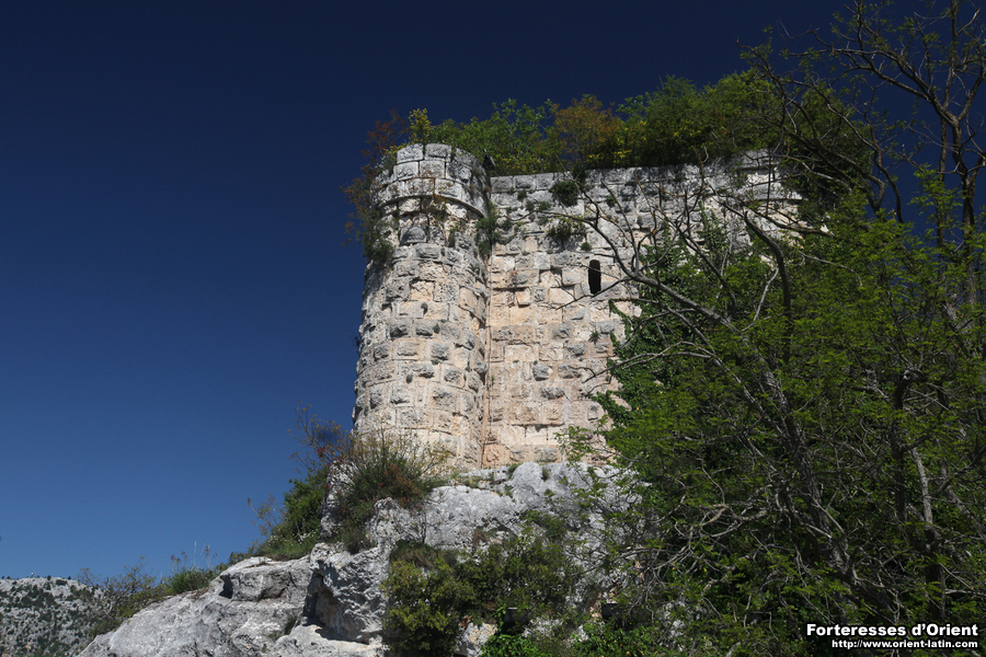 Seul l’angle sud-est est défendu par une tourelle sur le modèle classique de Sinap (Çandır) ou Hebilli. L’angle sud-ouest en est totalement dépourvu et les angles nord-est et nord-ouest sont eux renforcés par deux grosses tourelles complètement projetées vers les nord et n’offrant donc pas ou que très peu de flanquement pour les faces est et ouest. La longue face nord est renforcée d’une tourelle centrée supplémentaire.