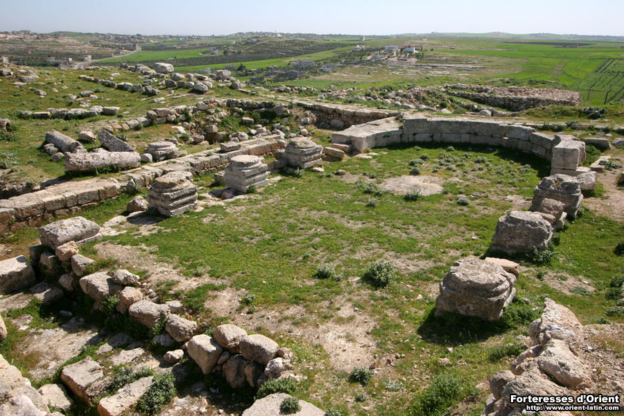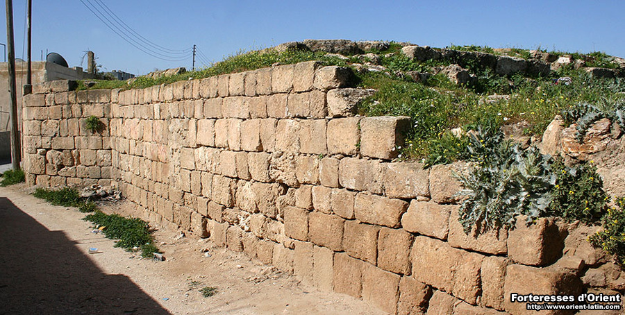 De nombreux vestiges de fortifications – essentiellement romains – jalonnent le site, attestant de sa vocation militaire à travers les âges. Les traces d’une hypothétique occupation franque pourraient être recherchées un peu en deçà du tell, près du village actuel, à la base des murs du Qasr Nabulsi