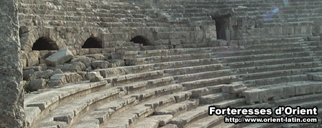 Le 23 juillet 1109, sur la route de Jerusalem, Tancrède enleva les deux places cotières de Banyas et Djabala et remit cette dernière à Renaud Ier Mansoier. Plus tard, on appela la place le « port de Balatanos », du nom d’une importante citadelle franque qui défendait l’intérieure de la toute jeune principauté d’Antioche. Djabala devint alors le siège d’un évêché et le théâtre antique fut aménagé en forteresse. Les ouvertures furent bouchées et des tours, aujourd’hui disparues, furent appliquées sur le pourtour.
