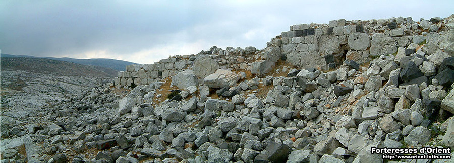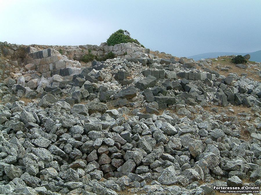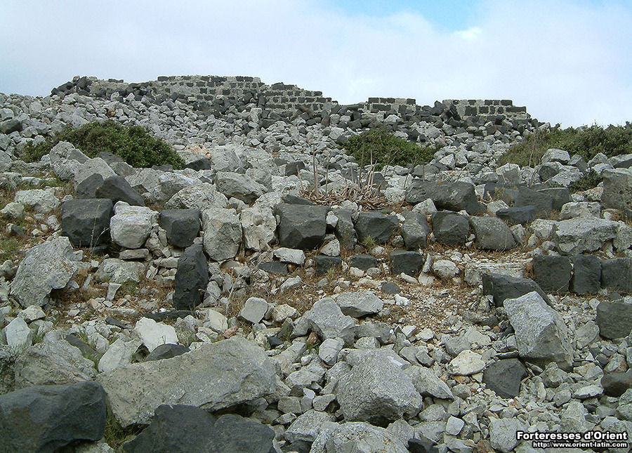 Bâti sur les contreforts du jebel Akroum, surveillant la trouée de Homs, qui correspond à cet endroit à la passe du Wadi el Meis, l’histoire de Méléchin ( en arabe Qalaat el-Burj ) semble se résumer à sa période d’occupation par les Francs, relevant de la chastellerie de Akkar. En mars 1181, le comte Raymond III de Tripoli céda la place, au même titre que la Cave de Memboé et le château de Touban aux Hospitaliers. Aujourd’hui, les vestiges sont réduits. On notera toutefois la présence d’une chapelle castrale tout en basalte, alors que le reste du site, qu’il s’agisse des tours rectangulaires ou des courtines, avait été réalisé principalement en calcaire.