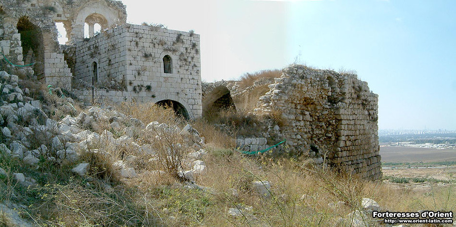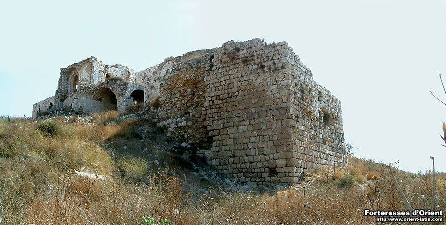 Les vestiges croisés sont encore largement visibles, même s’ils sont aujourd’hui pour leur plus grande partie masqués par les ajouts que les Ottomans portèrent à la forteresse au XVIIIème siècle, afin d’en faire la base d’une de leurs garnisons. Le plan général de ce castrum typique aux tours d’angle est parfaitement lisible. A noter le remarquable état de conservation de la tour nord-ouest, ainsi que les restes du donjon franc apparaissant par endroits dans la cour intérieure et ce malgré l’enveloppe de magasins et de chambres qui lui furent accolées.