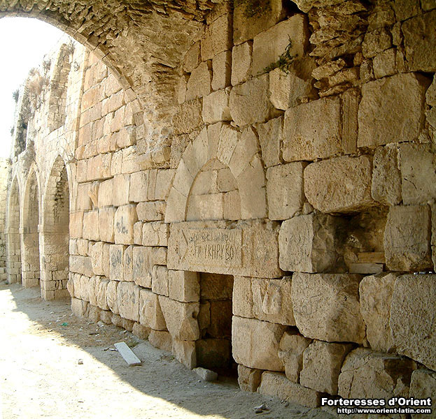 La différence de maçonnerie employée par les Latins et les Turcs est assez nette et permet d’identifier facilement les origines des différentes parties de l’édifice. On pourra remarquer la présence d’une pierre portant une inscription ‘martyrium de Saint Kyrikos’ traduisant le réemploi de certains matériaux pour l’édification de la fortification franque.