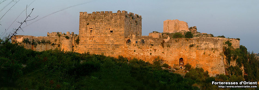 Bâtie sur une crète rocheuse de plus de 700 mètres de long entre deux ravins, cette importante citadelle contrôlait les voies d’accés entre la plaine de l’Oronte et la côte par le col de Bdama. Phénicienne, puis byzantine, elle fut prise par les Francs aux alentours de 1119 et donnée à la famille des Puylaurens. Ce château, le plus grand bâti par les Croisés, ne fut jamais confié à un ordre majeur. Aprés la bataille de Hattin, qui vit le massacre de la chevalerie franque, Saladin s’en empara en 1188 aprés seulement quelques jours de combats. S’en suivit une succession d’occupations arabes jusqu’à son abandon.