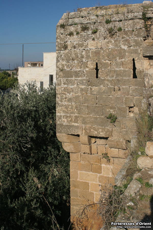 Deux petites échauguettes sont venues postérieurement renforcer les angles nord-ouest et sud-est de l’enceinte. Celle au nord-ouest, encore bien conservée, présente une forme originale de chambre ouvrant sur trois côtés sur un mâchicoulis continu.