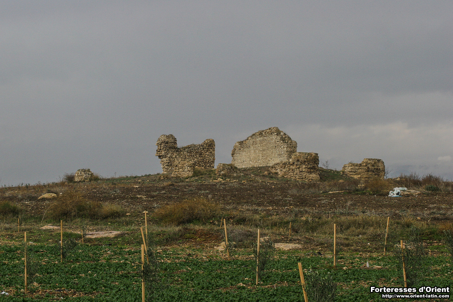 Dans un deuxième temps, les trois tourelles du front E ont été enveloppées par une nouvelle maçonnerie, dont on conserve aujourd’hui les assises inférieures. Cette campagne de renforcement indique, à l’évidence, le statut privilégié du front est : peut-être était-il plus en vue depuis la route d’Adana à Mersin ; peut-être intégrait-il la porte de l’ouvrage. Ce chantier de renforcement produit curieusement trois tours suivant chacune un plan particulier : quadrangulaire à angles abattus au nord, en fer-à-cheval au centre, quadrangulaire au sud. Grâce à ce chantier les défenseurs disposent de plateformes plus vastes et plus exploitables sur le sommet des tours. Pour autant, ces variations formelles un peu démonstratives pourraient indiquer une motivation tout autant symbolique que fonctionnelle de cette opération de modernisation.