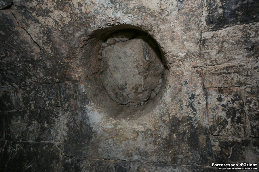 Le très petit gabarit des tours exclut la présence d’espaces intérieurs. Il est impossible, en l’état des connaissances et des observations, de déterminer l’implantation de la porte de l’ouvrage. La défense du site est renforcée par le creusement dans le rocher d’un petit fossé encore bien visible sur le front nord. Il a sans doute servi de carrière pour la construction primitive et/ou pour les transformations ultérieures.
