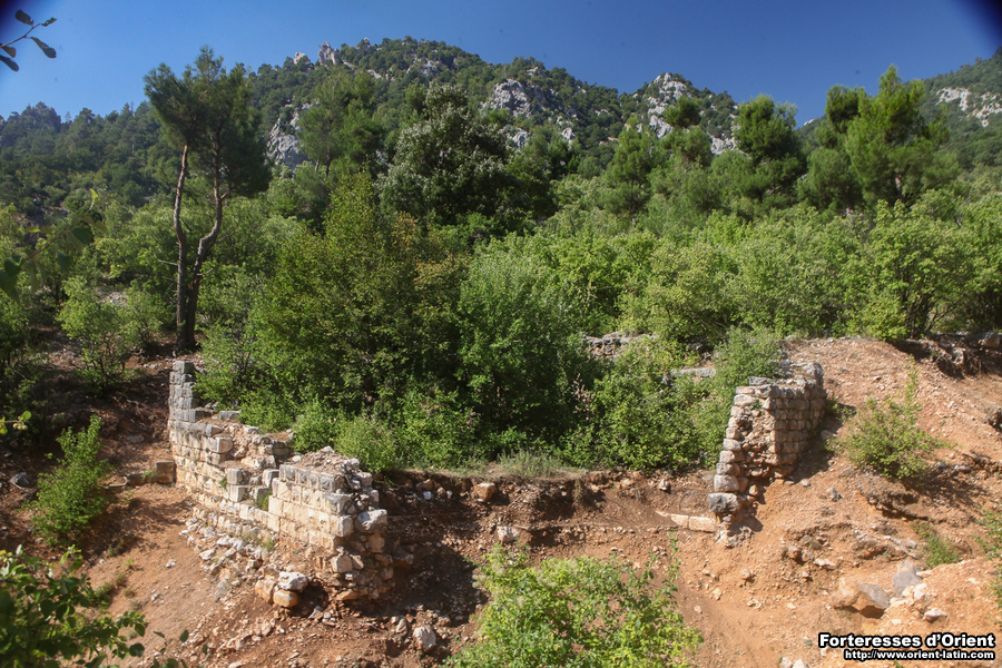 Au premier étage, les archères sont sous linteau monolithe taillé en voussure segmentaire et les niches sont couvertes de linteaux plans reposant sur sommiers en console. Il s’agit d’un modèle d’archère rare en Cilicie. Une seule autre occurrence de ce type d’archère a été reconnue en Cilicie, à Silifke.