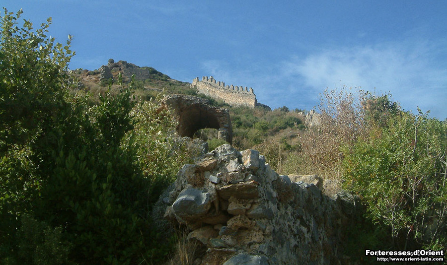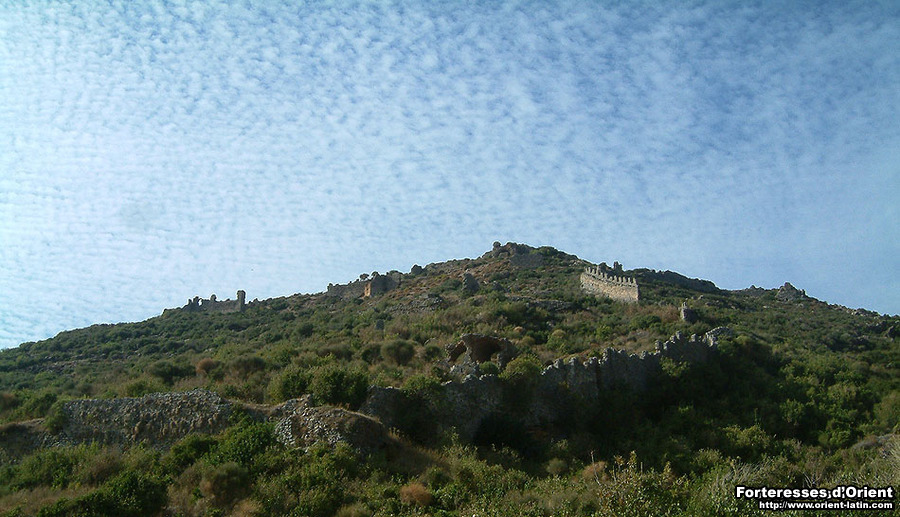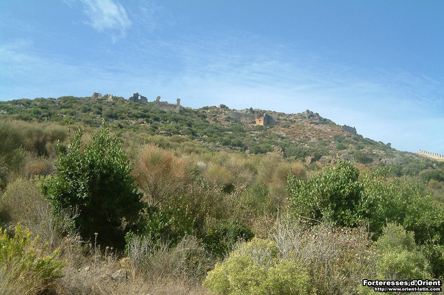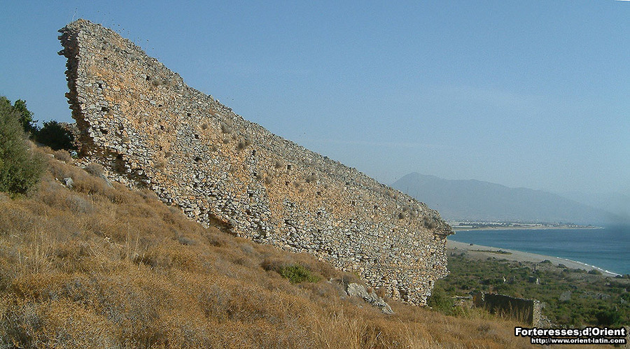 Il n’est pas aisé de gagner l’ensemble fortifé chargé de contrôler cette passe littorale. La citadelle, bâtie en schiste, présente d’importantes similitudes avec celle de Sik, non loin de là. Deux enceintes concentriques enferment un espace réduit couronnant le cap, offrant une vision panoramique sur la route côtière. En regardant vers l’est, on aperçoit l’éperon derrière lequel, comme en embuscade, les défenseurs de la citadelle de Sik défendaient l’entrée en Cilicie arménienne…