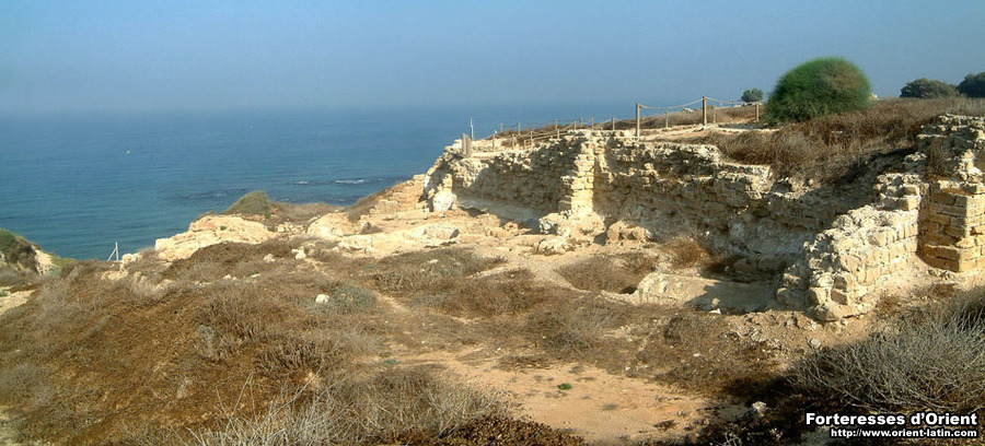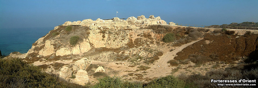 Le site d’Arsur, aujourd’hui appelé Tell Arshaf , surplombe de son mamelon le rivage méditerranéen. Occupé depuis la plus haute antiquité – les Phéniciens d’abord, les Grecs ensuite puis les Romains qui développèrent la petite cité – c’est sous la domination musulmane que la ville connut ses première structures fortifiées, lesquelles servirent lors de l’arrivée des Francs en Palestine.
