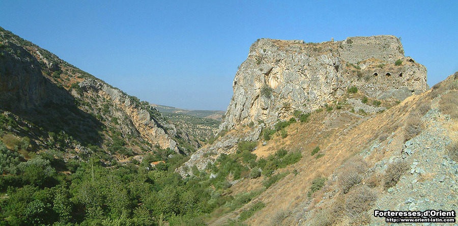 La citadelle se dresse sur un piton rocheux aux flancs escarpés, plus particulièrement sur le côté ouest, si bien que les défenses ont été surtout établies sur les autres fronts. Du coté oriental, par lequel se faisait l’accès, se trouvent deux enceintes dominées par un imposant donjon rectangulaire, le tout construit en petit appareil. Dans la cour se trouvent une grande salle et les vestiges d’une église à chevet plat percé de trois longues ouvertures qui était encore bien conservée avant le tremblement de terre de février 2023. Entre ces deux ouvrages, on remarquera la présence de chambres souterraines, soutenues par d’énormes piliers. Ces chambres additionnées aux nombreux corps de logements sur le reste du site, permettent de conclure que la place pouvait entretenir une importante garnison.