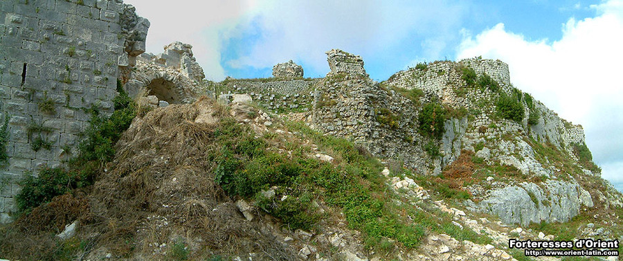 Aujourd’hui envahis par une abondante végétation, les vestiges du château couronnent, à 774 m d’altitude, un plateau sommital de forme ovale, d’où la vue embrasse une très grande étendue au contact de la vallée du Nahr el-Kebir.