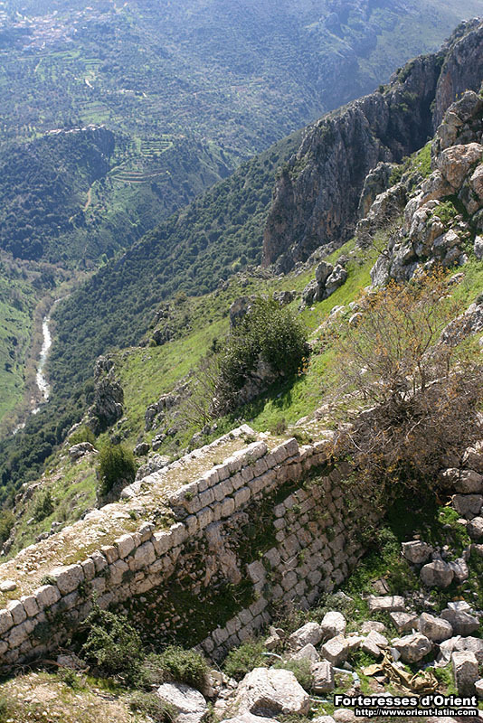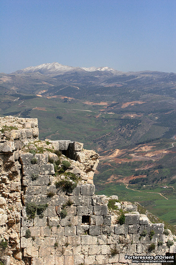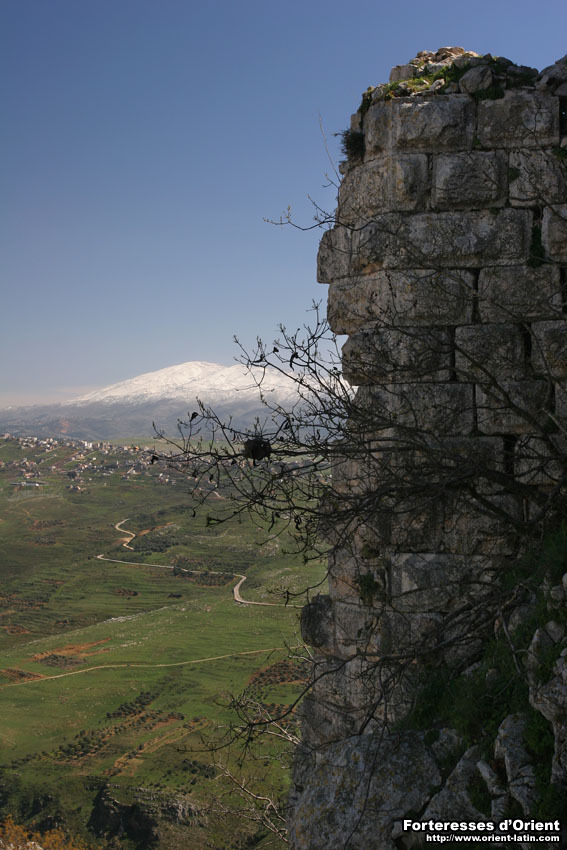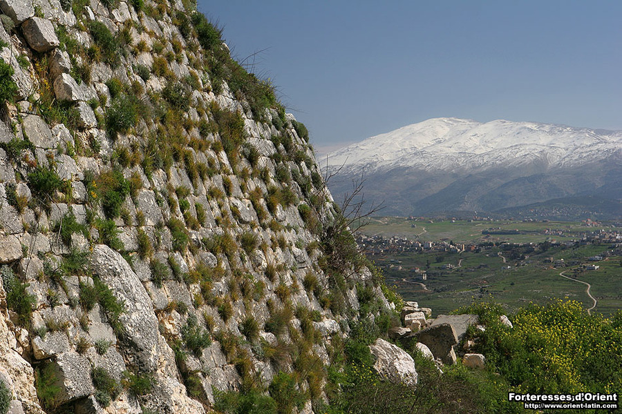 La partie basse, en bien meilleur état, renferme deux grands corps de bâtiments assez complexes, parsemés de galeries, casemates, chambres de tir et locaux à caractère plus résidentiel… Au sud du plateau, on aperçoit par temps dégagé la citadelle de Toron , et à l’est, celle de Subeibe.