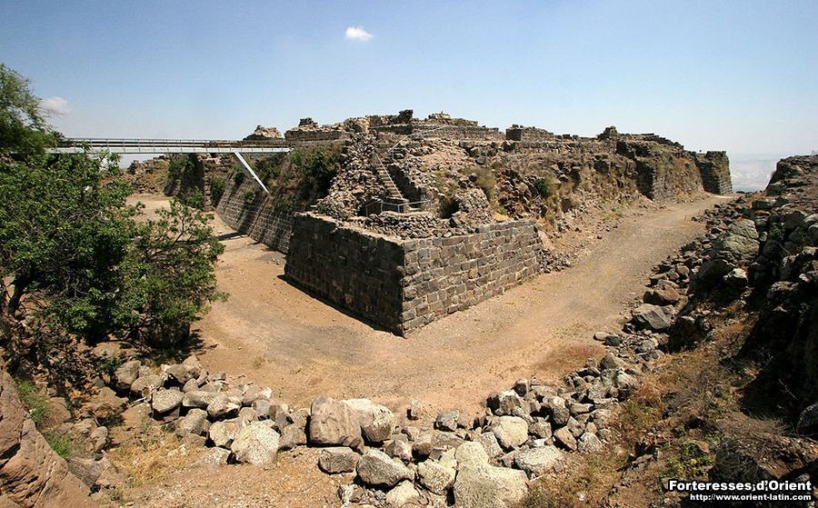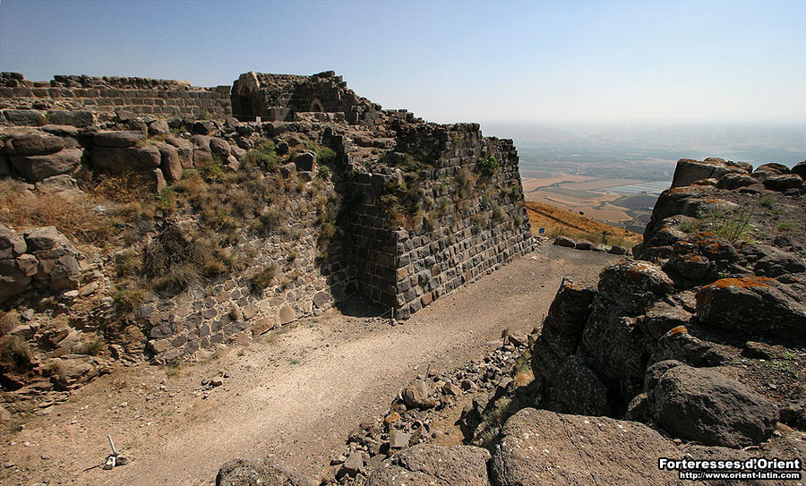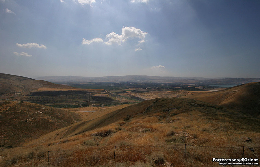 Juchée à plus de 300 mètres au-dessus de la vallée du Jourdain, la citadelle de Belvoir est bâtie en bordure du plateau de Naphtali, face aux collines de Guilead. Justement nommée Belvoir (également « le Coquet » !) par les Croisés, de part les vues qu’elle pouvait offrir sur la plaine d’Esdrelon (aujourd’hui plaine de Jezréel), la forteresse originelle fut édifiée par un obscur seigneur franc, Velos – vassal du comte de Tabarie – non loin des ruines d’un antique village juif nommé « Kochav », c’est-à-dire “l’Etoile” (curieuse correspondance : en arabe, la citadelle répond au doux nom de Kaukab al-Hawa, littéralement, “l’Étoile des vents”). Ce Velos vendit son apanage en 1168 à l’ordre des Hospitaliers, lesquels, comprenant l’importance stratégique de ce site, non loin du pont de Dudaire (actuel pont Allenby), décidèrent d’y bâtir une forteresse d’exception.