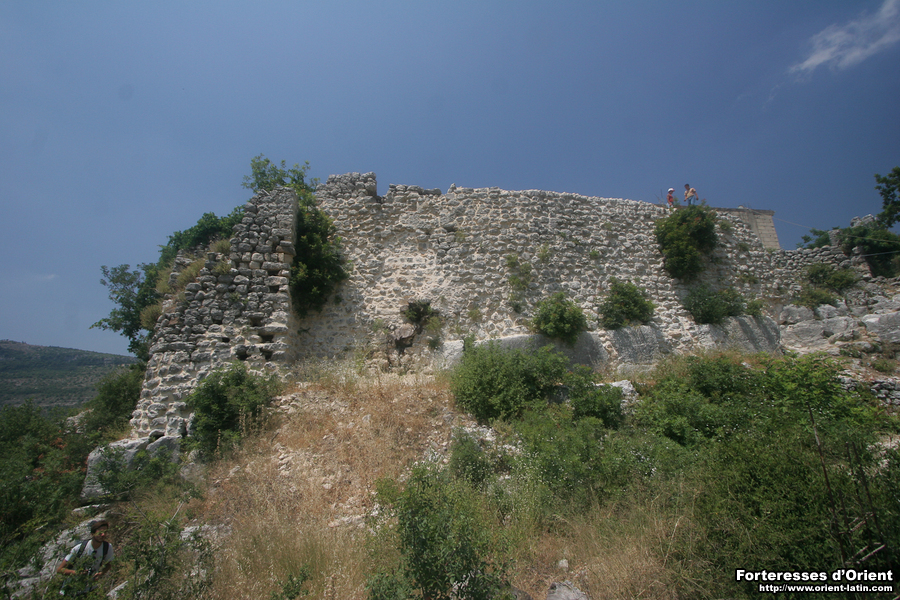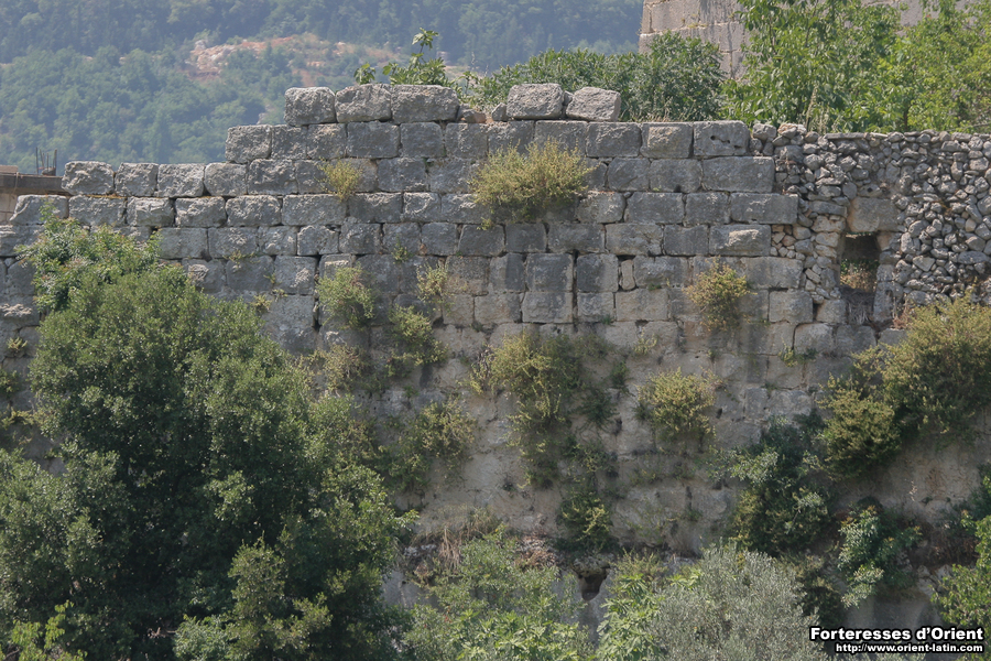 La seconde enceinte est réalisée en un appareil de même taille et dont les moellons sont beaucoup mieux appareillés et présentent des faces lisses. Il s’agit très vraisemblablement des vestiges du château byzantin initial. Le tracé de la courtine est marqué par la présence, notamment sur les fronts Est et Nord de plusieurs tours rectangulaires et de saillants qui en renforcent la défense.
