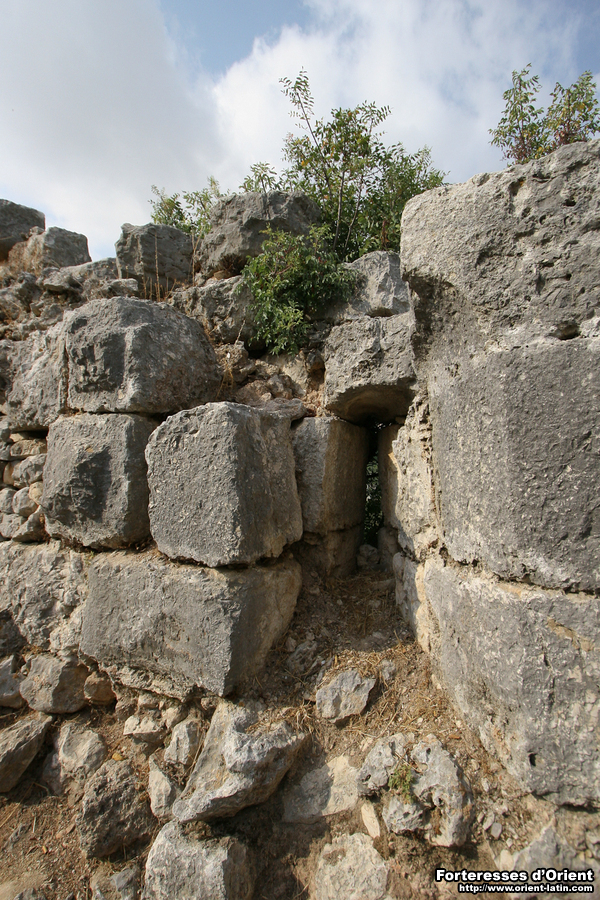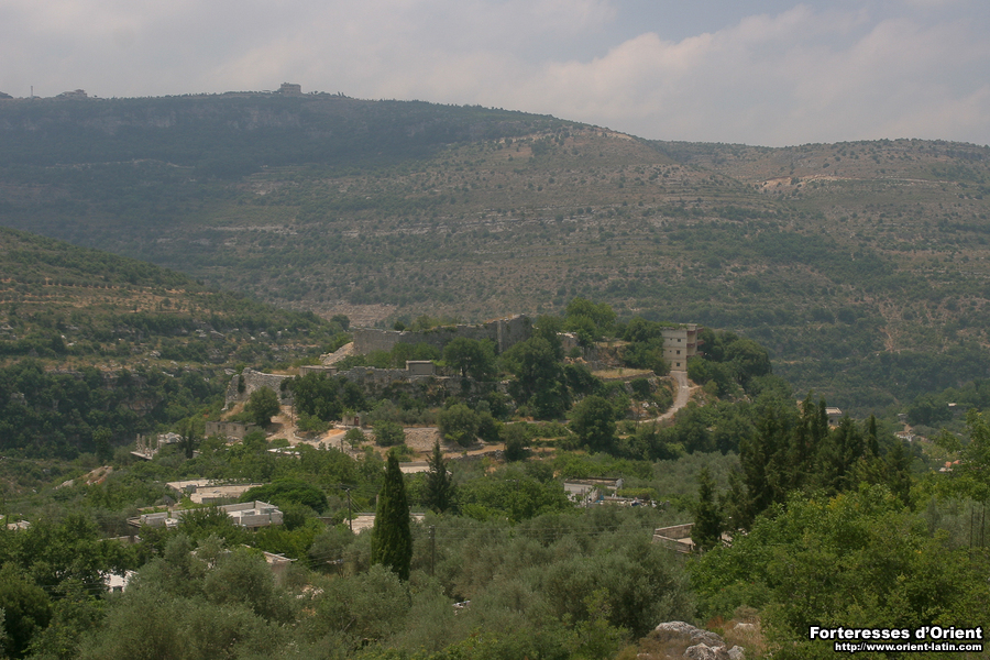 La forteresse campe au coeur du Djebel Bahra, à une vingtaine de kilomètres à l’Est de l’actuelle ville côtière de Gibel. Le site retenu consiste en une croupe rocheuse ovale alongée d’Est en Ouest sur un plus de 200m. Sa largeur Nord-Sud n’excède pas 50m. Ce mamelon, peu élevé, est bordé au Nord et au Sud par deux ravins aux pentes abruptes au fond desquels coulent deux torrents qui se rejoignent presque immédiatement à l’Ouest pour former le Ouadi al Malouk. Un village s’est développé aux pieds des courtines ainsi que dans certaines des cours intérieures.