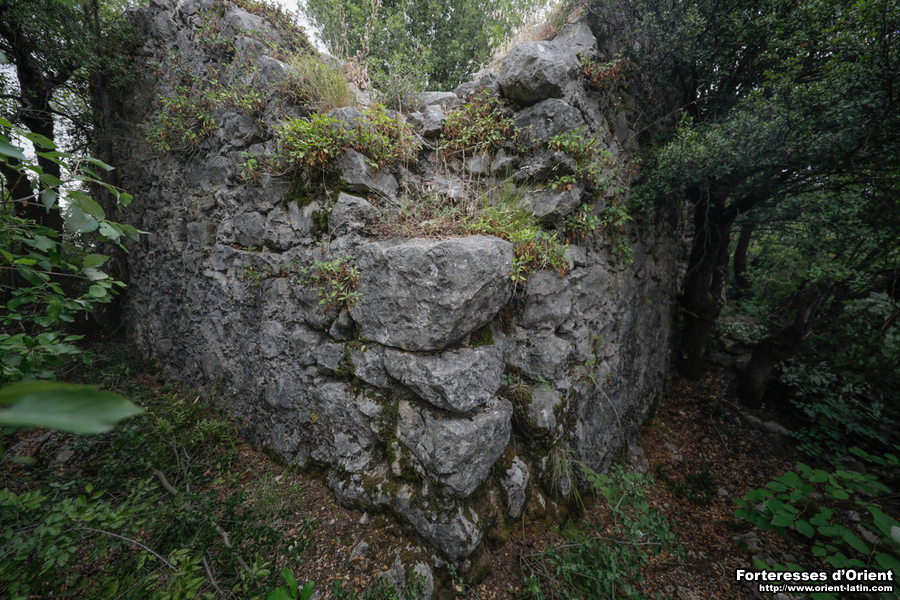 Cette enceinte est réalisée avec une maçonnerie grossière faite de gros moellons à peine équarris et de petites pierres de réglage liées au mortier. Les murs font, en moyenne, 1,2 m d’épaisseur. Rien ne laisse penser qu’un dispositif de couverture maçonné ait pu exister.
