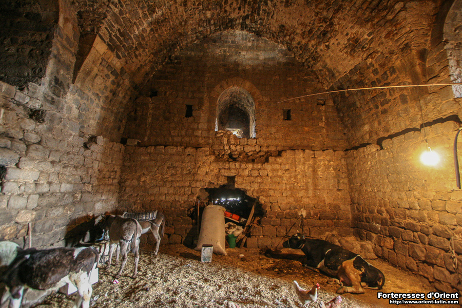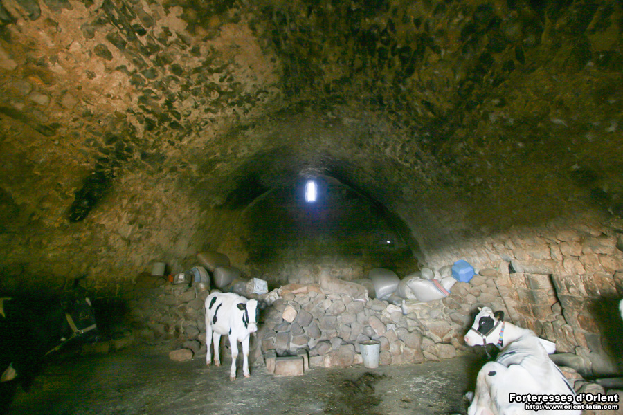 Il apparait que les bâtisseurs modernes ont décidés de complètement englober cette structure, probablement du fait de son bon état, en élevant la nouvelle maison directement dessus. Cet ensemble hétéroclite a été homogénéisé pour l’oeil par un habillage homogène en petit appareil basaltique, à la manière ottomane. La grande salle médiévale est aujourd’hui encore en parfait état et utilisée comme étable et il est probable que ce fut toujours le cas. On y entre par une porte dans le mur sud située juste en dessous à gauche de l’escalier qui permet d’entrer dans la maison en ruine.