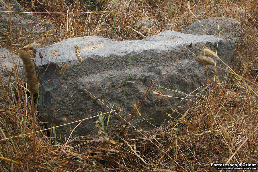 Par ailleurs, les restes de plusieurs meules en basalte dispersées sur la croupe rocheuse semblent attester de l’exploitation agricole du lieu à l’époque byzantine, et il est alors fort probable que les Francs se soient contentés de fortifier un hameau préexistant.