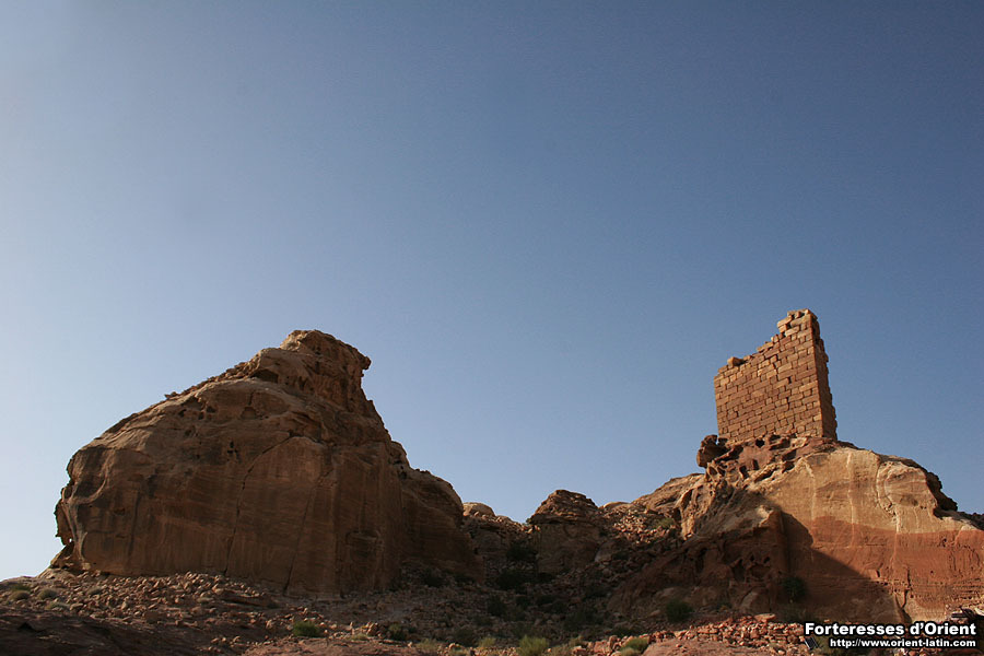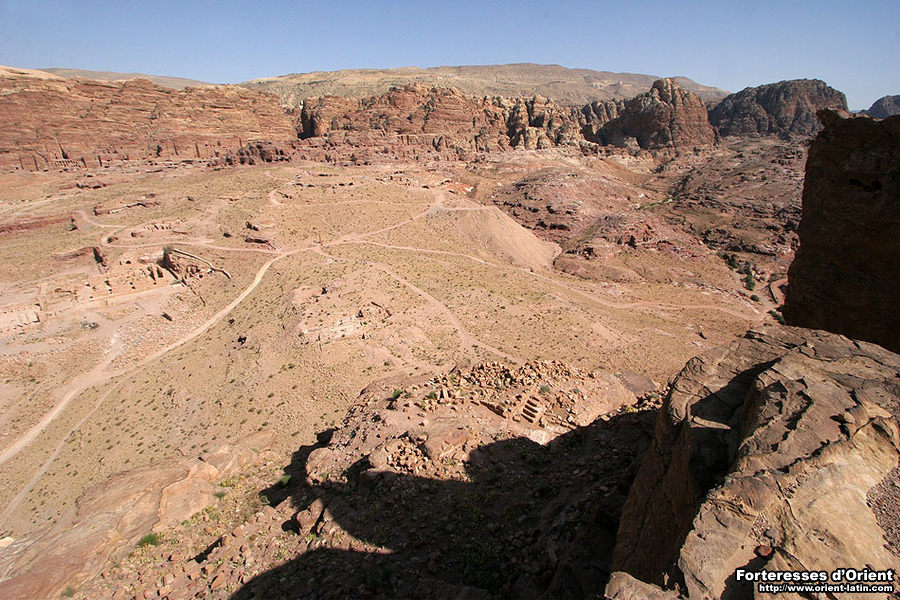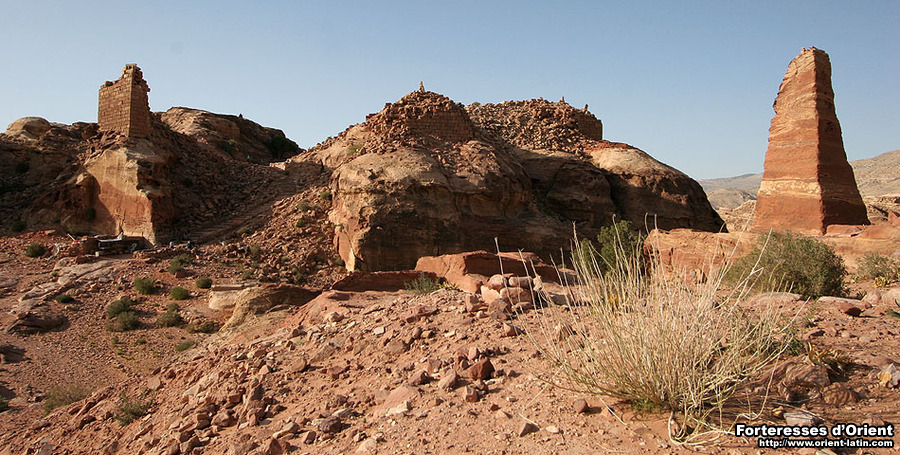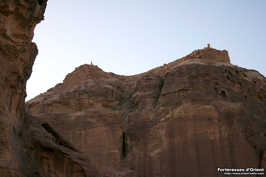 Dominant la ville antique de Pétra depuis le plus haut point de son cirque, de nombreuses structures fortifiées attestent de l’intérêt stratégique que put représenter une telle position pour les maîtres de ce véritable “port du désert”.