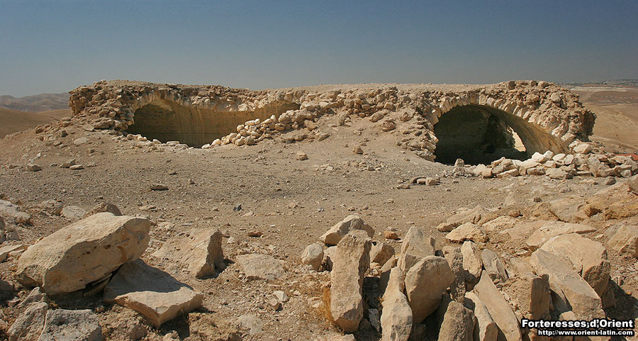 La région est d’une aridité rare et encore aujourd’hui très peu peuplée. Il est donc aisé d’apprécier l’aubaine d’une telle halte, entre Burj Ibn Jubair al-Tahtani et Bethanie, pour tout ceux qui se lançaient dans la difficile et périlleuse marche de Jérusalem jusqu’au Jourdain. Aussi les citernes du château – dont l’une est encore visible – donnèrent son nom à ce lieu dont la garnison s’employait à protéger les pélerins des brigands et autres détrousseurs de grand chemin.