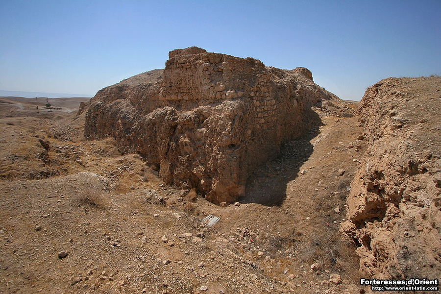 C’est l’ordre du Temple qui, dans son désir premier de protection aux pèlerins, réoccupa et refortifia cette place, qui, très vraisemblablement dès l’époque romaine, fut un poste de garnison militaire. Admirablement située sur la route qui mène de Jérusalem au lieu du Baptème, la Cisterne Rouge – Cisterna Rubea – semble avoir été conjuguée avec une structure civile située au pied de l’édicule sur lequel est ancrée la forteresse.