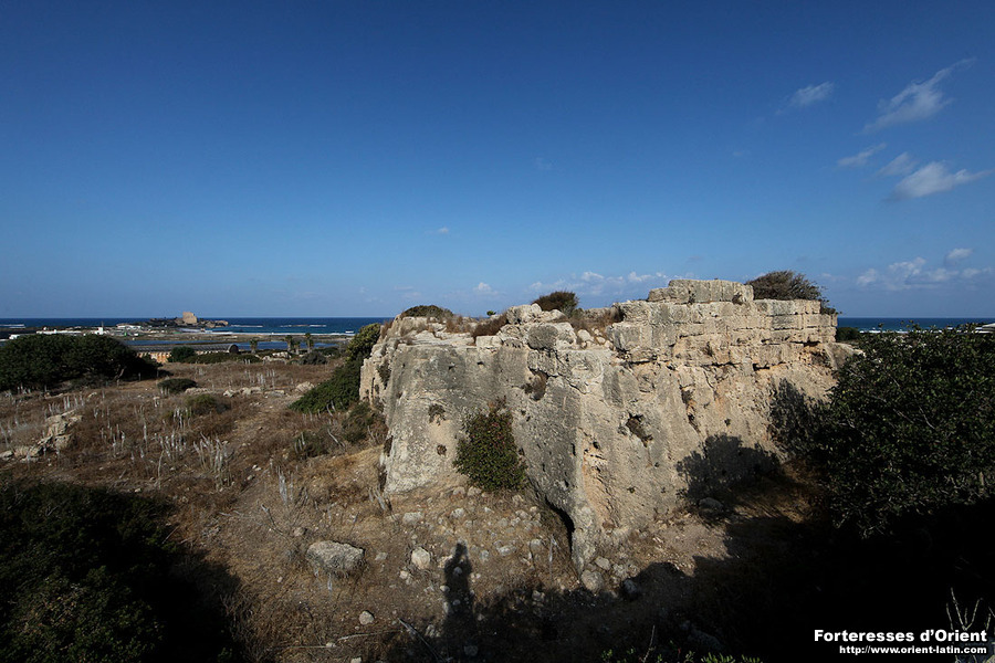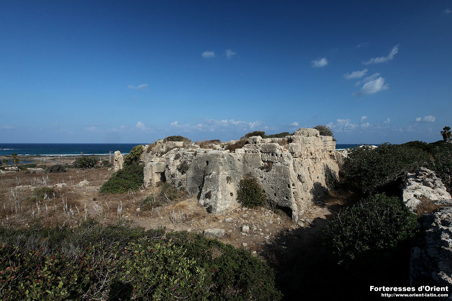 L’histoire de la tour du Détroit, appelée aussi la Pierre Encise ou encore Via Stricta dans les chroniques, est étroitement liée à celle d’un étroit corridor, passage obligé à l’époque des Croisades pour qui parcourait le littoral palestinien. Situé entre Caiffa et Césarée, là où la plaine littorale ce resserre, ce lieu consistait en un long défilé taillé dans la roche, d’une largeur de seulement quelques mètres pour une longueur de plus de deux cents environ. L’origine même de l’aménagement de ce passage semble remonter à l’Antiquité et la présence d’encoches se faisant face, dans les parois constituant les deux extrémités du conduit semble indiquer qu’il put être fermé par des portes à cette époque.