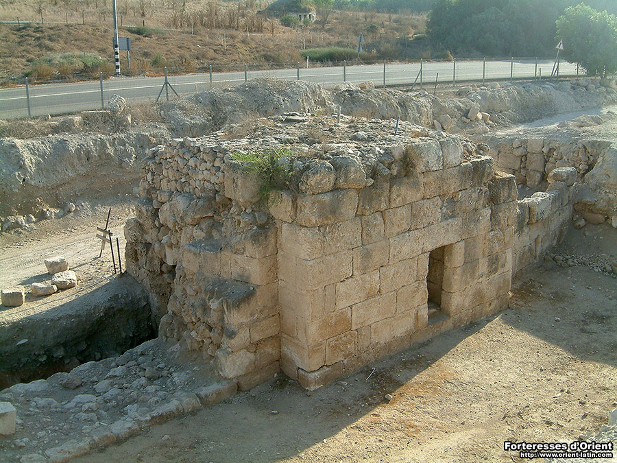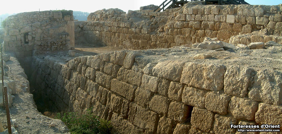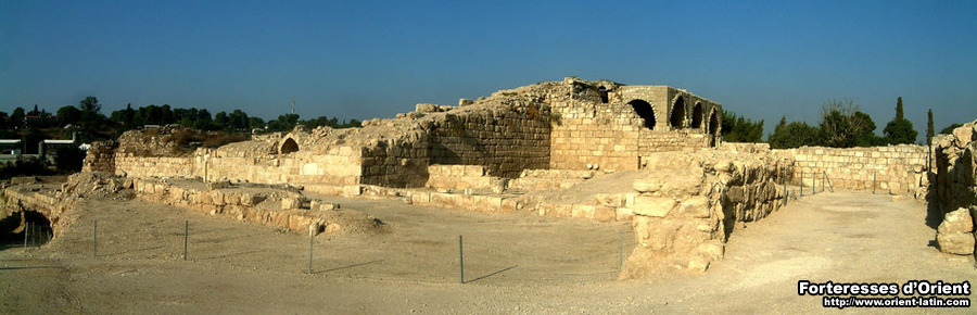 Les chroniques franques racontent que le patriarche de Jérusalem Guillaume de Messine vint diriger en personne les travaux, avec l’assistance des barons du domaine royal et le renfort des habitants de la région. Réutilisant les vestiges de la ville antique, les bâtisseurs firent fort bel ouvrage : « Forz murs i firent et hauz. Torneles grosses, fossés parfonz, barbacanes bonnes".