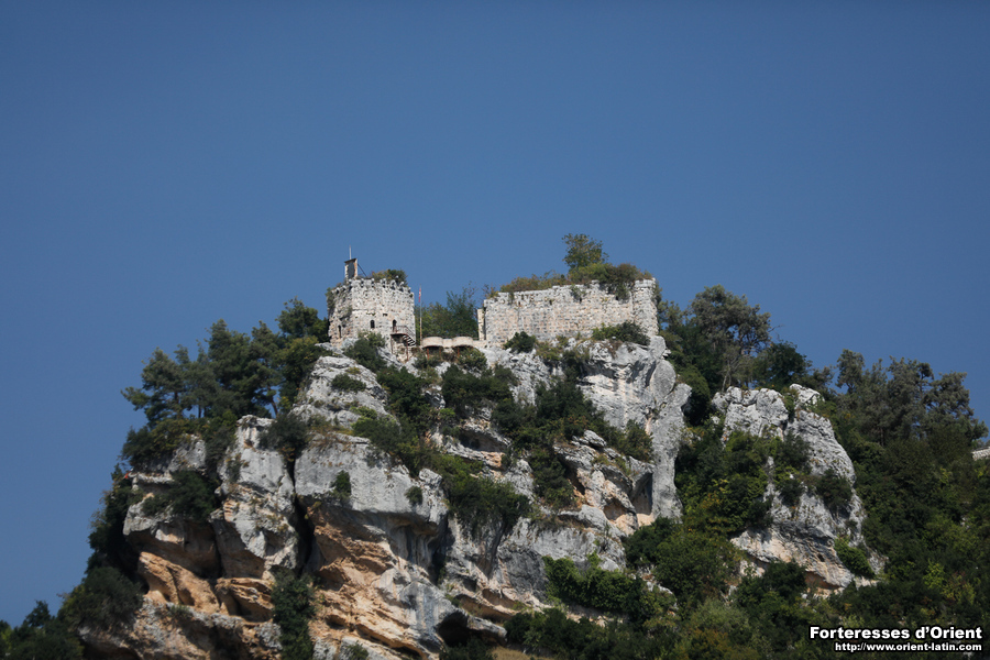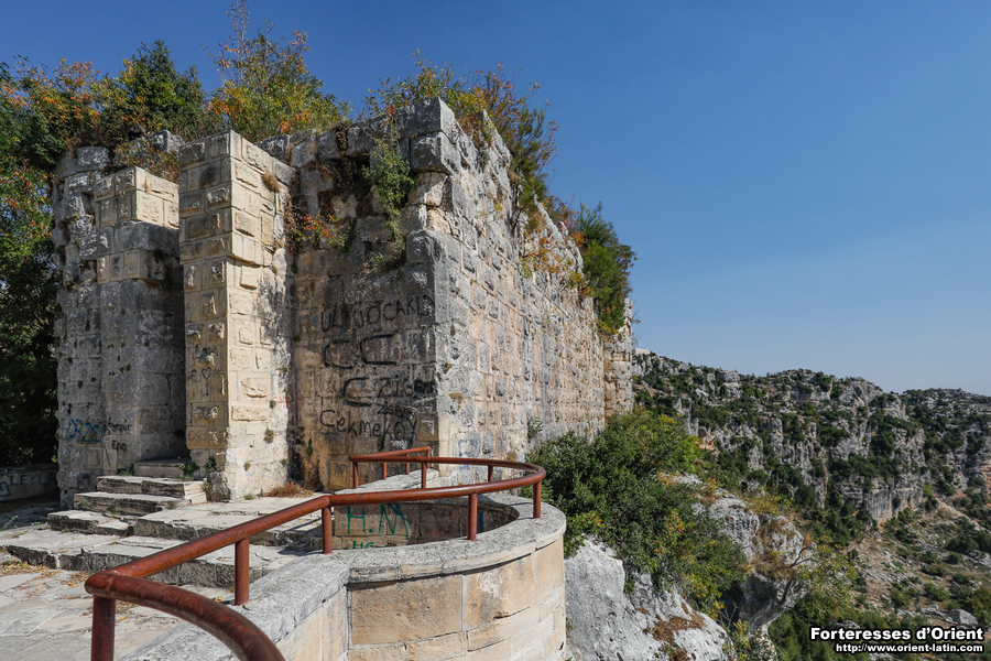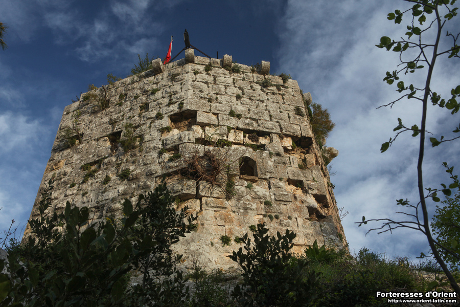 Seul l’angle sud-est est défendu par une tourelle sur le modèle classique de Sinap (Çandır) ou Hebilli. L’angle sud-ouest en est totalement dépourvu et les angles nord-est et nord-ouest sont eux renforcés par deux grosses tourelles complètement projetées vers les nord et n’offrant donc pas ou que très peu de flanquement pour les faces est et ouest. La longue face nord est renforcée d’une tourelle centrée supplémentaire.
