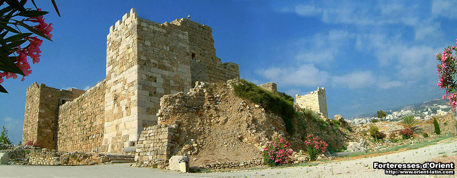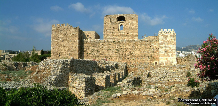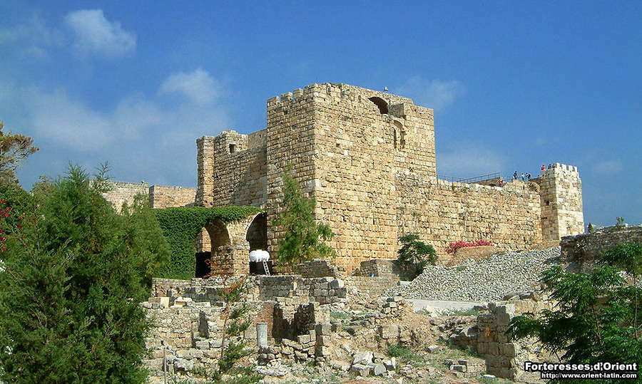 Le château de Giblet – sans doute l’un des plus anciens construits par les Croisés – présente la particularité d’être situé au sein d’un vaste champ de ruines archéologiques, où se mêlent, face à la Méditerranée, les vestiges laissés par les plus grandes civilisations de l’Antiquité. On suppose que ce fut là, au contact de monuments perses pourvus d’appareil à bossage, que les Francs adoptèrent cette technique qui deviendra tout au long du XII° siècle leur « marque de fabrique » pour la construction d’ouvrages militaires. D’où la présence de ces imposantes pierres à bossage tabulaire sur l’ensemble de l’édifice mais également de ces fûts de colonne placés en boutisse, eux aussi réemployés à bon escient.
