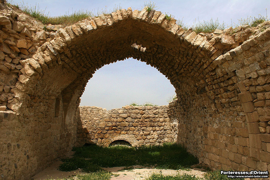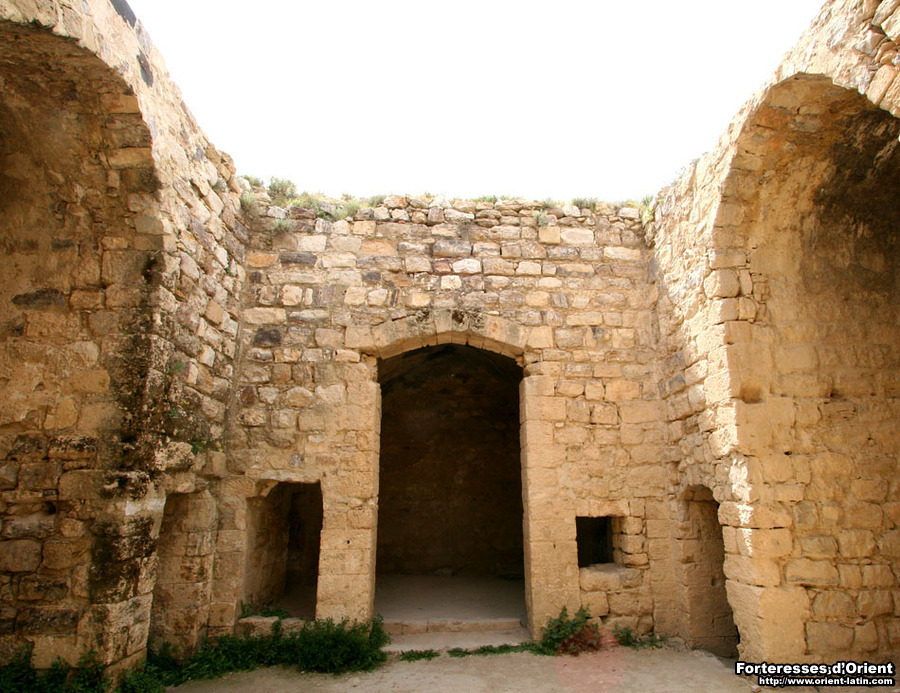 Adossés au mur bouclier, se trouvent deux niveaux de galeries voûtées, manifestement franques, le niveau inférieur servant originellement d’écurie. Au fond de ladite galerie, une pierre sculptée rappelle l’occupation du site par les Nabatéens.