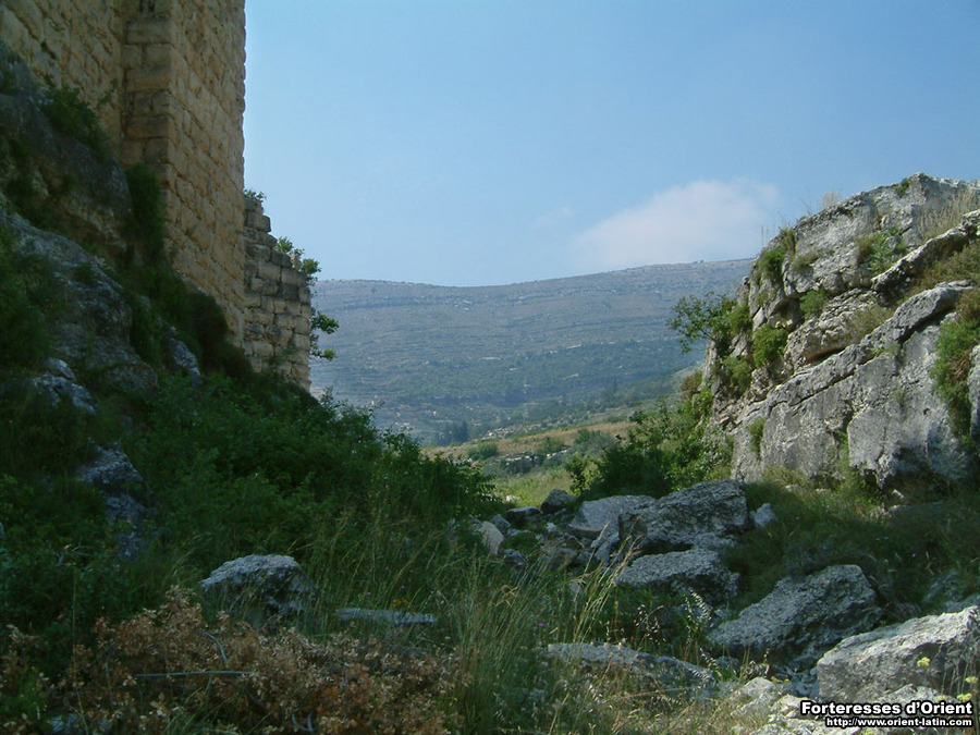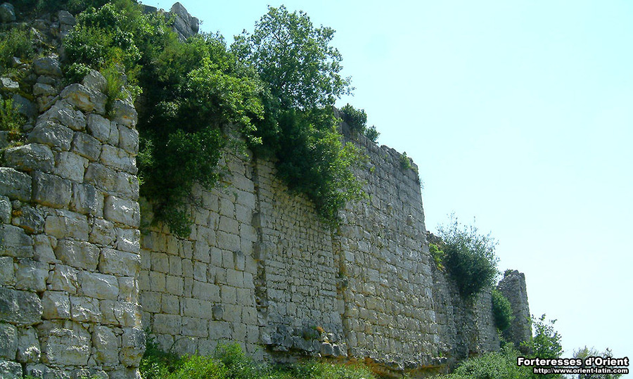 Un fossé, large de 10 m pour 5 m de profondeur, a été creusé au front nord pour isoler le château du plateau attenant. C’est précisément à ce niveau qu’ont été réalisées les défenses les plus conséquentes, matérialisées surtout par un ouvrage flanqué de deux grands saillants carrés aux extrémités, dissimulant une tour maîtresse qui sera reprise à l’époque mamelouke.