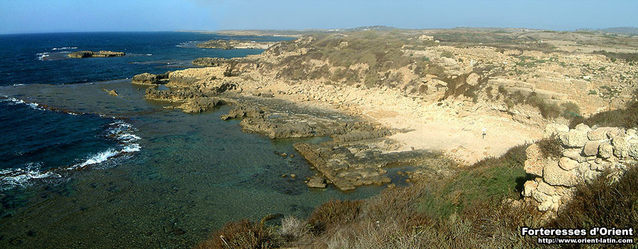 A seulement une dizaine de kilomètres au sud de Chastel-Pélerin se trouve l’antique localité de Dor, petit port naturel occupé depuis les XIIIème et XIIème siècles avant notre ère et légèrement dominé par un éperon rocheux, rappelant à maints égards celui que l’on trouve à Ibelin.