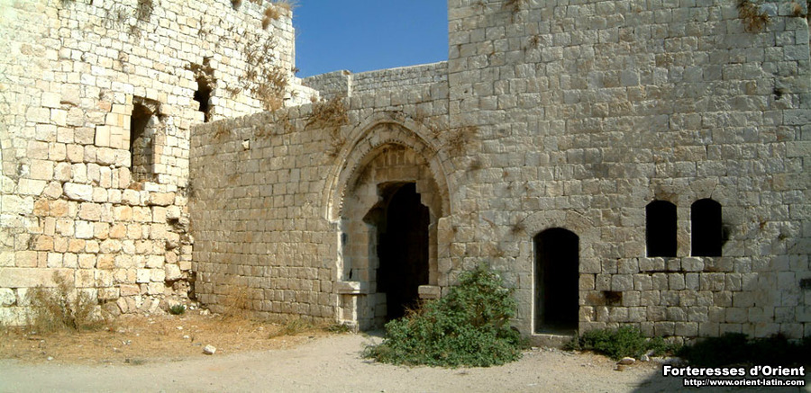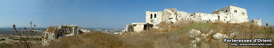 Les vestiges croisés sont encore largement visibles, même s’ils sont aujourd’hui pour leur plus grande partie masqués par les ajouts que les Ottomans portèrent à la forteresse au XVIIIème siècle, afin d’en faire la base d’une de leurs garnisons. Le plan général de ce castrum typique aux tours d’angle est parfaitement lisible. A noter le remarquable état de conservation de la tour nord-ouest, ainsi que les restes du donjon franc apparaissant par endroits dans la cour intérieure et ce malgré l’enveloppe de magasins et de chambres qui lui furent accolées.