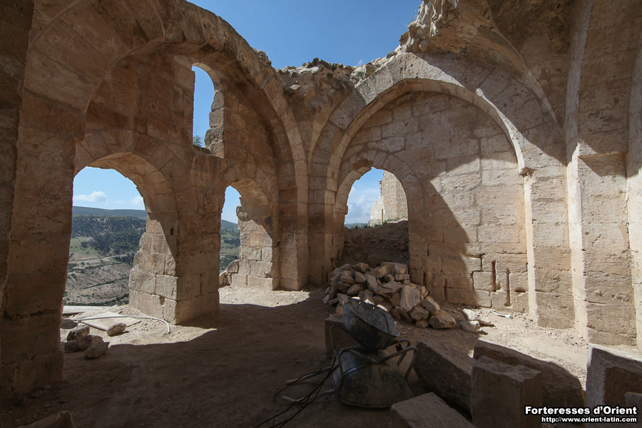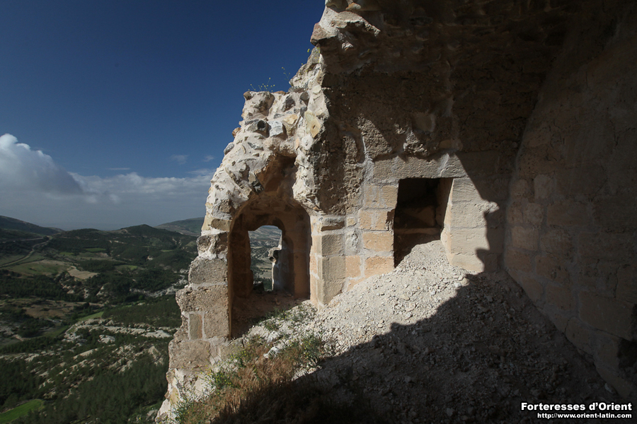 Bien qu’ayant été la maintes fois mise à mal par les tremblements de terre de ces derniers siècles, la forteresse présente encore de fort beaux restes. On retiendra surtout une porterie relativement bien préservée (vraisemblablement d’origine Ayyoubide) au sud de l’édifice ainsi que l’existence de petites salles joliment voûtées encore à moitié ensevelies. A noter également l’existence de citernes à l’est du site auxquelles on accède par des escaliers taillés dans la roche. De l’enceinte, seuls quelques pans et tours d’angle subsistent encore en état, laissant néanmoins transparaître d’élégantes meurtrières et mâchicoulis. Il semble que l’ouvrage ait été jadis défendu par une barbacane, aujourd’hui largement ruinée.